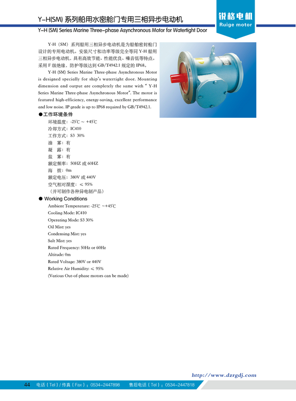 Y-H(SM) Series Marine Three-phase Asynchronous Motor for Watertight Door